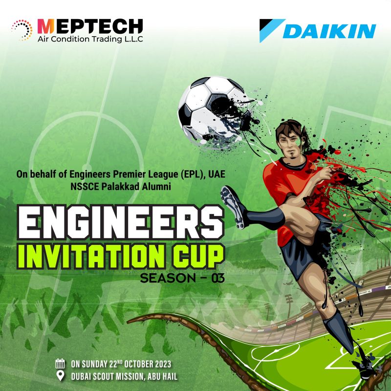 We MEPTECH Air Condition trading along with DAIKIN proudly presents the ENGINEERS INVITATION CUP-3, organized on behalf of Engineers premier league(EPL), UAE and NSSCE Palakkad Alumni !